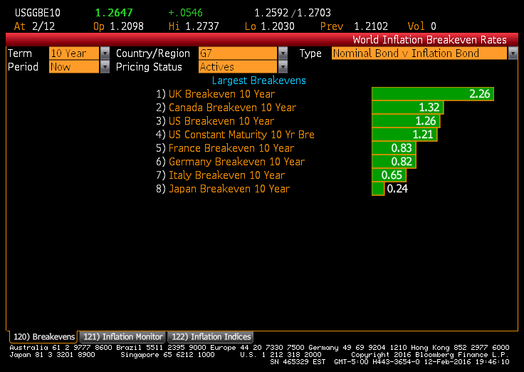 This screen displays the highest and lowest inflation breakeven rates for various countries, so we can identify investment opportunities in the bond market. Breakeven rates indicate the difference between the yield of an inflation linked bond and a regular bond. We can display breakeven rates across the globe, by a region or country, or by maturity. Breakeven rates are a measure of bond markets' implied inflation expectations.